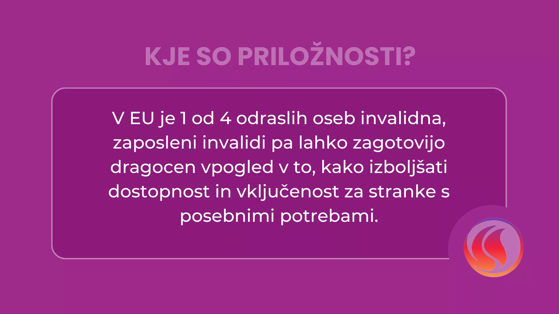 Čeprav so prioriteta, pa projekt ne dela zgolj v dobrobit invalidov. Z izvajanjem aktivnosti in politik vključenosti, lahko namreč pridobi celotno podjetje.